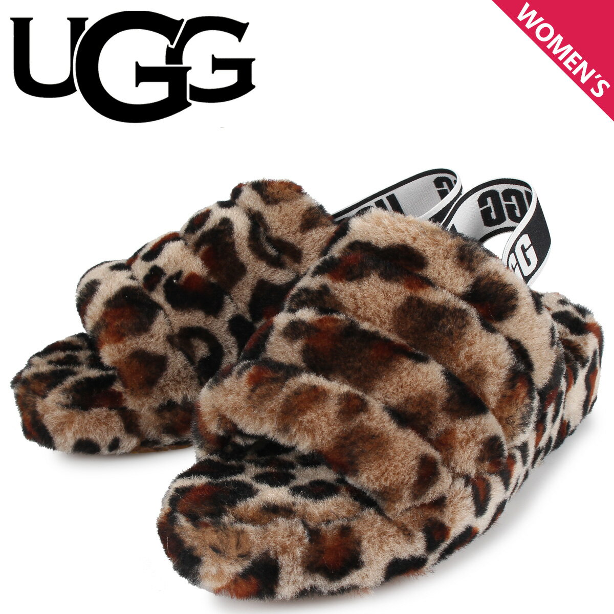 【最大2000円OFFクーポン】 UGG アグ サンダル ムートン フラッフ イヤー スライド レディース WOMENS FLUFF YEAH SLIDE LEOPARD シープスキン レオパード ブラウン 1106252